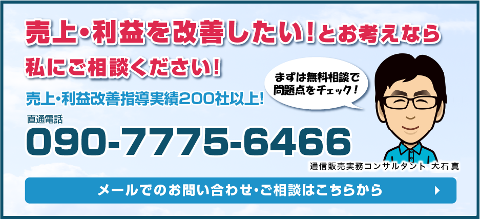 豊富な通販実務の経験から、実務に携わった者でないと絶対にわからない、具体的かつ実践的なノウハウを持っています。特にリピート売上獲得のためのシステム構築には多数の実績もあり自信を持ってご提供しております。
